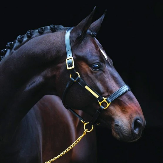Qualitätsvolles Lederhalfter von Amigo by Horseware. Das Halfter hat Messing Schnallen und ein Namensschild aus Messing auf dem Backenstück. Sowohl der Nasenriemen als auch das Kopfstück sind gefüttert, sodass das Halfter nicht scheuert. Das Halfter ist einfach verstellbar und bietet einen hohen Tragekomfort für Ihr Pferd.