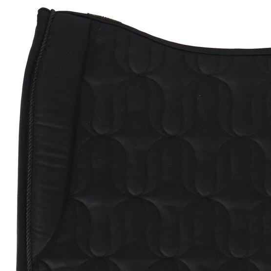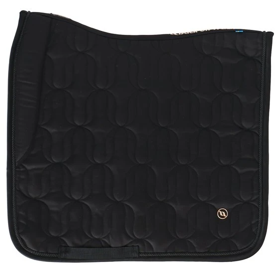 Deep Nights Schabracke Dressur ist eine raffinierte Ergänzung unserer hoch angesehenen Nights-Kollektion. Die Schabracke ist in Tiefschwarz erhältlich und ist wunderschön mit schwarzen Paspeln und Schwarz-auf-Schwarz-Stickerei versehen. Das Back on Track-Logo ist in Roségold gehalten, was der Schabracke einen eleganten Look verleiht.
