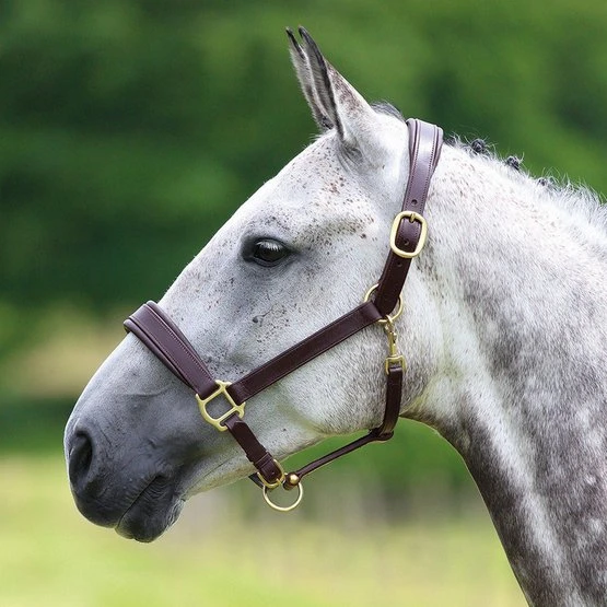 Dieses elegante Kopfband aus wachsartigem, braunem Conker-Leder verfügt über Polo-Nähte für Country-Chic. Verstellbares Kopfstück mit zwei Enden, verstellbarem Nasenband, aufsteckbarem Halsschlag und hochwertigen Messingbeschlägen. Koordinierende Stirnbänder, Gürtel und Hundehalsbänder erhältlich.