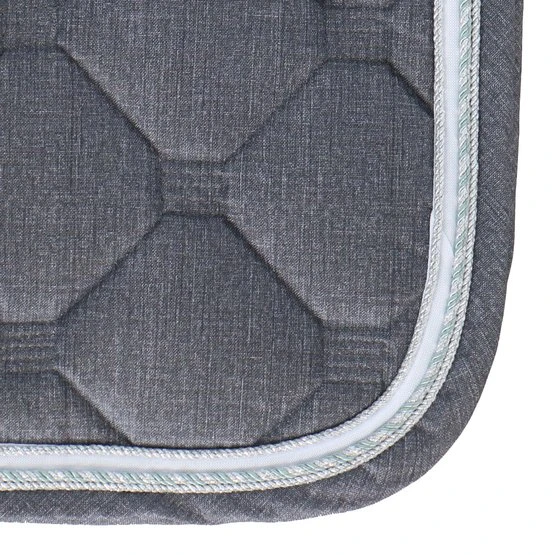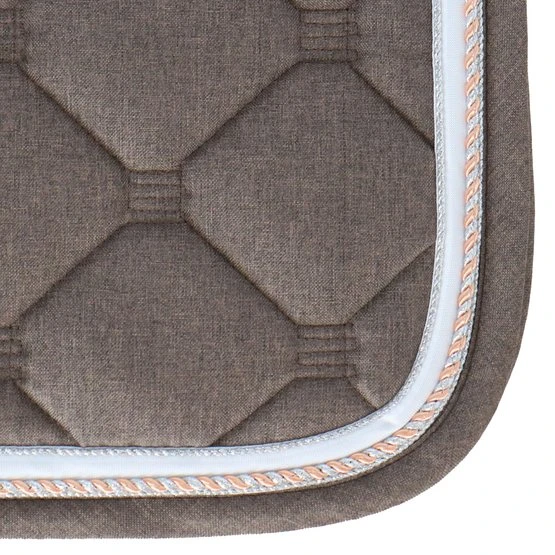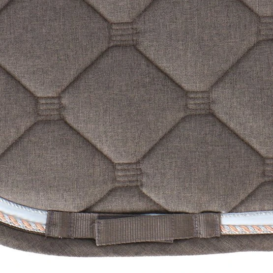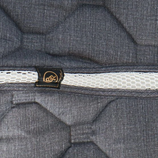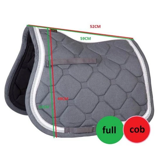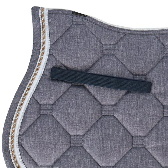 Stylische Schabracke aus Polycottongemisch mit einer Airflow-Rückennaht um die Luftzirkulation anzuregen. Die Schabracke hat eine 400 g Füllung, 8 mm Schaumpolster und ein Ciba behandeltes (feuchtigkeitsregulierendes) Polyester-Airflow-Futter. Es hat einen Einfass aus Airflow-Polyester und eine 3-reihige Silberkordel. Gurtstrippen- und Sattelgurtbefestigung mit Kletverschluss.