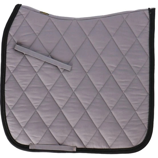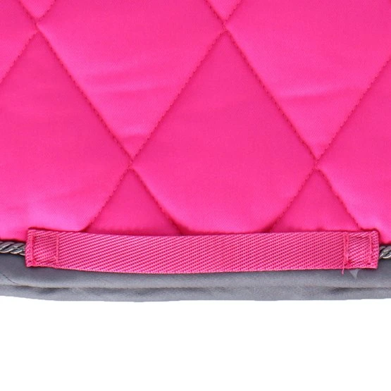 Die Schabracke ist mit einer oder zwei Kordelpaspeln verziert und enthält eine verstellbare Sattelschlaufe mit Klettverschluss.