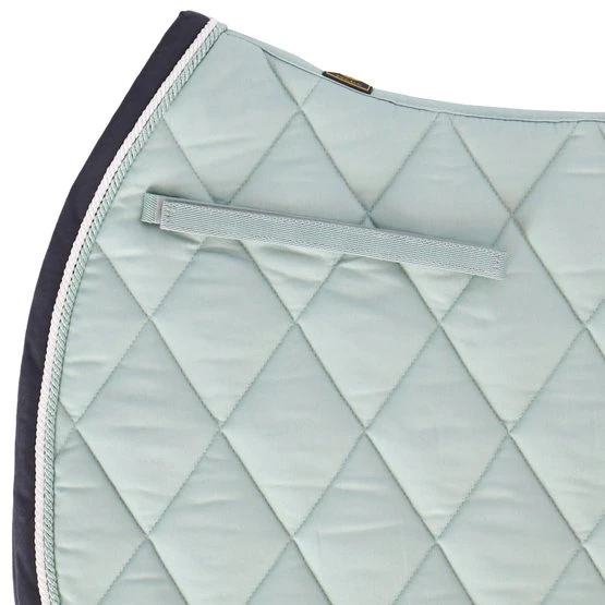Die Schabracke ist mit einer oder zwei Zierkordeln dekoriert und es enthält eine Gurtstrupfenbefestigung mit Klettverschluss.