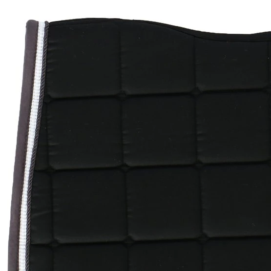 Diese luxuriöse Schabracke aus Baumwollmischgewebe-Twill verfügt über eine stoßdämpfende Füllung aus 700 g Filz und 10 mm Schaumstoff. Die anatomisch geformte Schabracke hat ein Cool Plus-Innenfutter mit hervorragenden feuchtigkeitsregulierenden und atmungsaktiven Eigenschaften. Durch die anatomisch geformte Rückennaht entsteht weniger schnell Druck auf Wirbelsäule und Widerrist. Die Schabracke ist mit einer Paspelkordel und einem dekorativen Band verziert und kommt in einer Karosteppung. Die Gurtschlaufen sind mit Klettverschluss versehen. Maschinenwaschbar bei 30 °C. Diese Schabracke kann mit verschiedenen anderen Artikeln in derselben Farbe aus der Xcellence-Linie kombiniert werden.