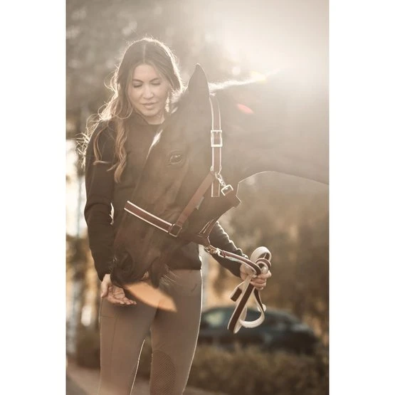 Das Genickstück ist mit einer Schnalle verstellbar. Das Bucas Dublin Fohlenhalfter verfügt über 3 verstellbare Schnallen, sodass dieses Halfter über einen längeren Zeitraum verwendet werden kann.