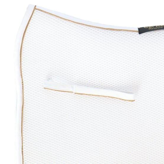 Die Schabracken aus der Diamantkollektion von Cal Rei sind mit einem Baumwollbesatz und einem gold-, silber- oder bronzefarbenen Faden entlang des Besatzes versehen. Diese Schabracken haben ein super luxuriöses Aussehen, perfekt für Wettkämpfe.