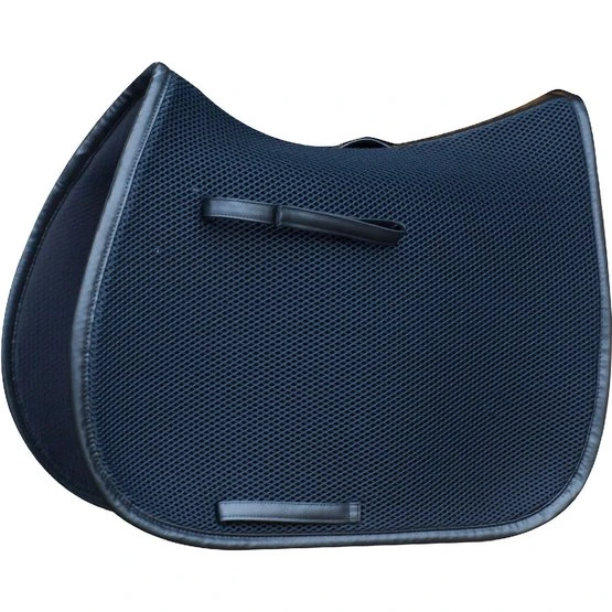 Das 3D-Abstandsmaterial besteht aus Polyesterfasern, die in horizontaler und vertikaler Richtung verwoben sind. Das macht das Material langlebig, belastbar und leicht. Durch die zwei Webrichtungen der Fasern entsteht eine offene Struktur, die sehr belastbar ist. Dadurch bietet es eine gute Druckverteilung und Stoßdämpfung. Ein Vorteil für Reiter und Pferd! Das Material passt sich dem Pferderücken an, springt aber ohne Druck in seinen ursprünglichen Zustand zurück. Dadurch bekommt das Pad keinen Abdruck vom Sattel und die Bewegungen des Pferdes werden gut unterstützt. Die am Pferd anliegende Innenschicht des Pads besteht aus weichen Fasern und ist somit angenehm für das Pferd. Die äußere Schicht ist etwas steifer, damit die Schabracke in Form bleibt und der Reiter gestützt wird.