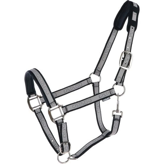 High-End-Halfter mit CATAGO-Logo. Das Halfter hat eine Sympatex-Polsterung am Nasenband und eine abnehmbare Sympatex-Polsterung über der Umfrage. Das Halfter ist am Hals und unter dem Unterkiefer verstellbar.