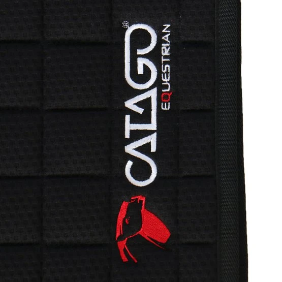 Das Catago FIR-Tech Healing-Sattelkissen verfügt über Synthermax-Faserfüllung und Futtermaterial mit gewebten Keramikpartikeln, die einen fortschrittlichen Doppelwirkungseffekt bieten. Das speziell entwickelte Keramikmaterial wandelt die Körperwärme des Pferdes um und reflektiert sie, wenn elektromagnetische Infrarotwärmestrahlung das Gewebe durchdringt und die Blutgefäße erweitert. Das Ergebnis ist eine Erhöhung der Geschmeidigkeit der Rückenmuskulatur und breitere Bewegungen für das Pferd. Kommt sowohl in der Dressur als auch für alle Zwecke.