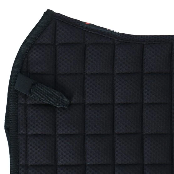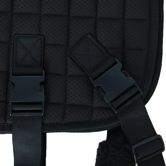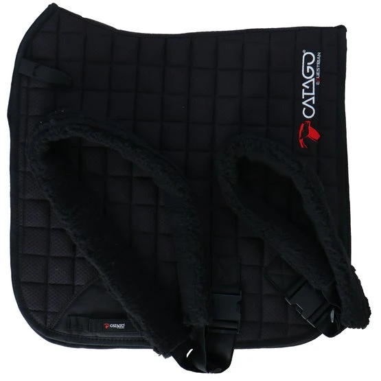 Die CATAGO FIR-Tech-Trainingsschabracke vereint alle Vorteile der beliebten FIR-Tech-Schabracke mit Gummizügen, um die Rücken- und Bauchmuskulatur Ihres Pferdes zu stärken. Das Training mit dieser Schabracke kann zu einer Verbesserung der Bewegung und des Gleichgewichts führen. Die Schabracke verfügt über eine Synthermax-Faserfüllung und ein Innenmaterial mit gewebten Keramikpartikeln, was für einen fortschrittlichen Doppeleffekt sorgt. Das speziell entwickelte Keramikmaterial wandelt und reflektiert die Körperwärme des Pferdes, während elektromagnetische Infrarot-Wärmestrahlung in das Gewebe eindringt und die Blutgefäße erweitert. Die Folge ist, dass die Flexibilität der Rückenmuskulatur zunimmt. Gummibänder werden mit großen Schnappschnallen an der Schabracke befestigt und können je nach Bedarf in der Länge angepasst werden. Ein weiches Plüschfutter rund um die Gummibänder sorgt dafür, dass das Pferd bei der Arbeit nicht durch die Gummibänder abgenutzt wird. Die Trainingsschabracke kann vorteilhaft sowohl beim Longieren als auch beim Reiten verwendet werden. Sollte mit Vorsicht verwendet werden.