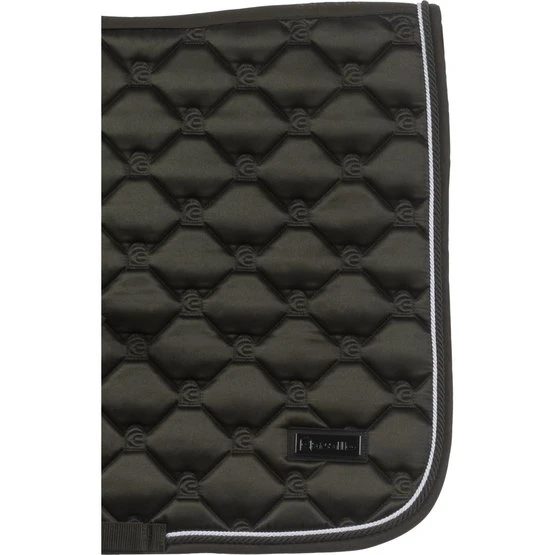 Eine edle, vielseitig einsetzbare Schabracke aus leicht glänzendem, hochwertigem Obermaterial. Aufwendiger allover Rautenstepp mit integriertem Cavallo Logo. Ein kleines, exklusives Cavallo Label in Gumetal Optik Die matt silberne Kordel verleiht der Schabracke eine edle Optik. Das schnell trocknende und Feuchtigkeit transportierende Mesh-Futter ist besonders hautfreundlich und bietet höchsten Komfort. Eine formbeständige Wattierung ermöglicht der Schabracke eine perfekte Lage auf dem Pferderücken. Die oberen und unteren Gurtstrupfen sind mit einem Klettverschluss zu fixieren.