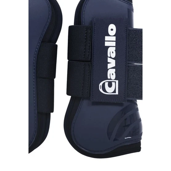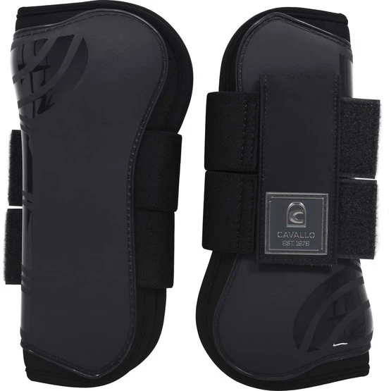 Strapazierfähige Hartschalen-Gamaschen in cooler Optik. Die Innenseite der Gamasche ist mit angenehmem Neopren ausgekleidet. Auf der Rückseite und Oberseite der Gamasche befindet sich seitlich eine kleine Aussparung, die mehr Bewegungsfreiheit ermöglicht. Die Gamaschen sind außen mit zwei breiten Gummizügen und Flauschband zum Verschließen versehen. Die Klettbänder werden mit einem doppelten vertikalen Klettband fixiert. Oben auf den Klettverschlüssen ist ein großes silbernes Cavallo-Logo aufgedruckt