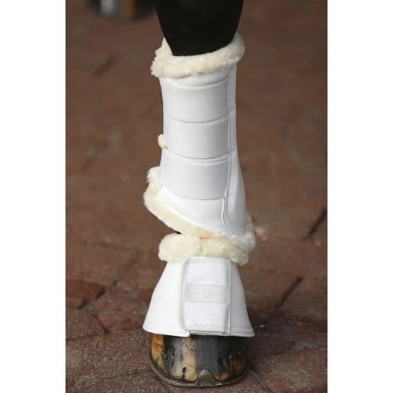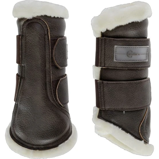 Aus strapazierfähigem Kunstleder|zum Schutz des Pferdebeins|mit Klettverschluss (Gr. S, M zwei Klettverschlüsse, Gr. L, XL drei Klettverschlüsse)|innen weich gefüttert mit Kunstfell|anatomisch angepasste Form