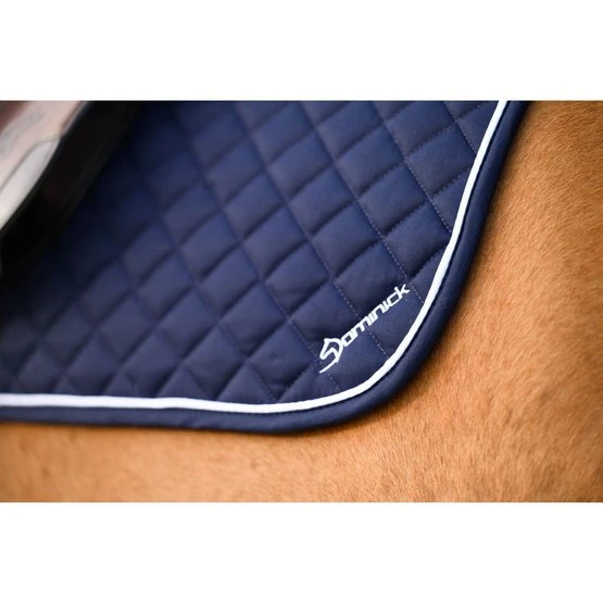 Die Dominick Springschabracke besteht aus einem dünnen Futter für optimalen Kontakt zum Pferderücken. Der Bezug hat einen so feinen Stoff, dass er auch nach dem Waschen schön bleibt. Ideal für den täglichen Gebrauch oder Wettkampf.