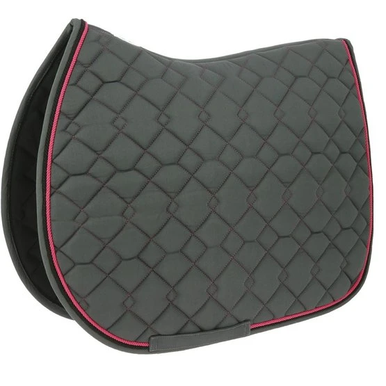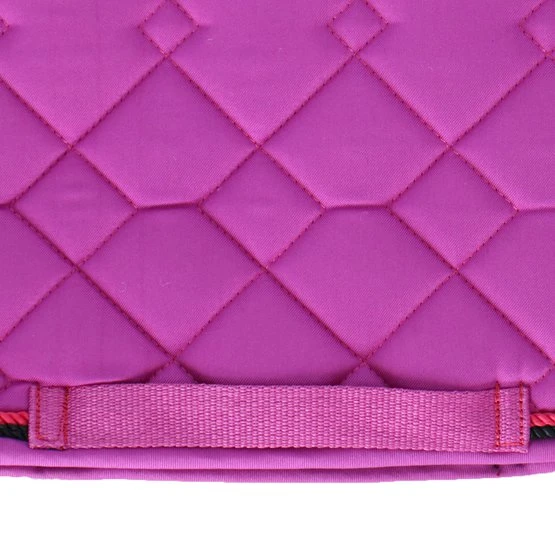 Sattelkissen aus 100% Polyester mit 300 g / m² Polyfüllung und 10 mm Schaumstoffpolsterung. Mesh-Futter für mehr Atmungsaktivität. Dekoriert mit 2 feinen Kordeln mit unterschiedlichen Nähten. Klett- und Umfangschlaufen.