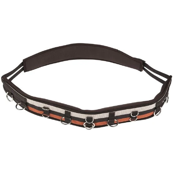 Aus Polypropylen mit Neopren unterlegt und schaumgepolsterten Kissen. Ausgestattet mit 15 Metallringen für eine optimale Einstellung. Doppelter Schnallenverschluss und abnehmbarer Gurt mit Metallschnallen.