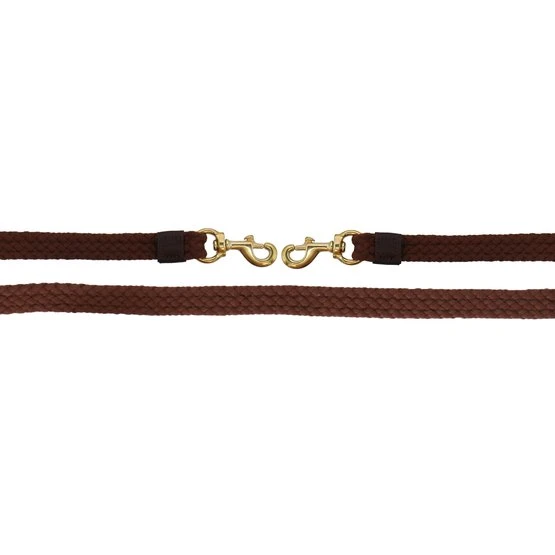 FRA Gabi / flacher langer Zügel aus geflochtener Baumwolle 25 mm, mit Clips 680 cm braun