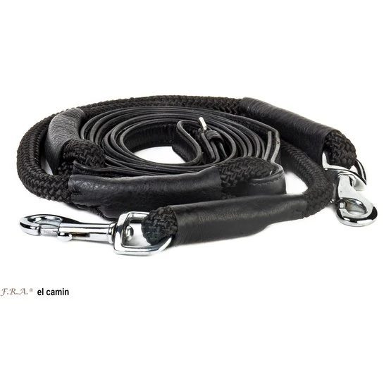 FRA-Zinn / Zügel mit Clips aus Shire-Kordel / schwarzem weichem Leder