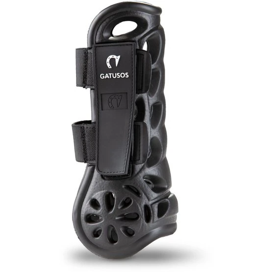 Gatusos Vordersehnenschoner Modell AIR. Paar professionelle Frontprotektoren aus innovativem patentiertem Material EVA GUMFLY (Ethylenvinylacetat) perforiert, atmungsaktiv und superleicht.