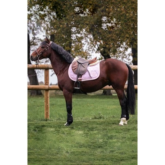 Diese Schabracke besteht aus Polycotton. Das Waffel-Baumwollfutter bietet eine bessere Absorption und optimale Atmungsaktivität. Die Wabenpolsterung passt sich allen Pferdemorphologien an. Es ist schlank und elegant und eignet sich sowohl für intensive Trainingseinheiten als auch für das Freizeitreiten.