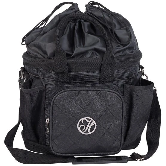 Pflegetasche oval mit vielen Staufächern! Oberteil kann mit Kordelzug geschlossen werden. Die Putztasche hat innen und außen ein verschließbares Fach mit Reißverschluss. Mit abnehmbarem Tragegurt.