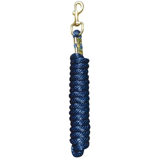 Extra langer, geflochtener Halfterführstrick mit goldfarbenem Karabinerhaken.