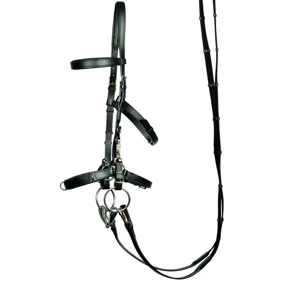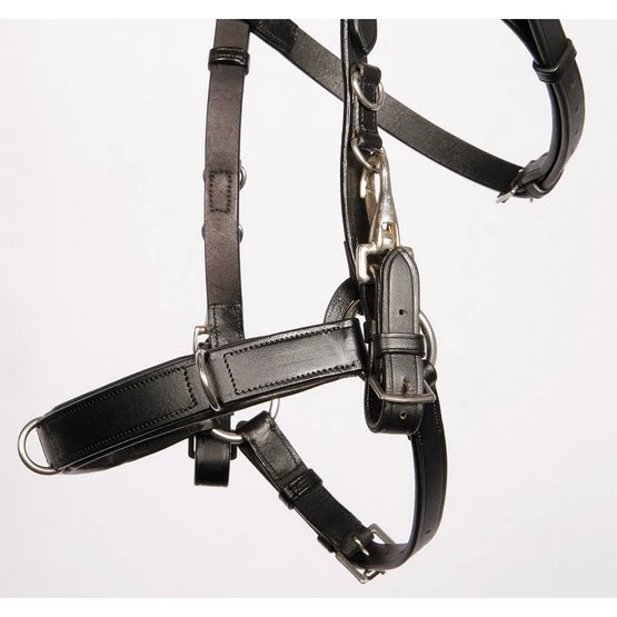 Dieser Lederkappzaum (Longierzaumzeug) ist am Genickstück, am Nasenriemen und am Kehlriemen verstellbar. Der Stirn- und Nasenriemen sind jeweils gepolstert. Ein Gebiss ist einfach anzubringen. Wenn man ohne Gebiss reiten möchte werden Gurtzügel mit Schnallen empfohlen (z.B. Artikelnummer: 44418559).