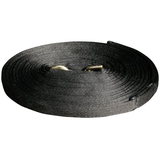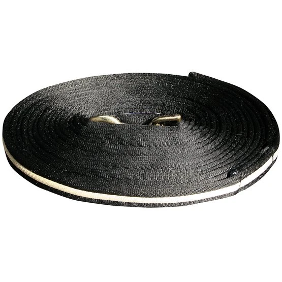 Softlonge mit frei drehendem Karabinerhaken und Schlaufenende. Länge 8 Meter. Verpackt in transparenter Aufbewahrungstasche mit Reißverschluss.