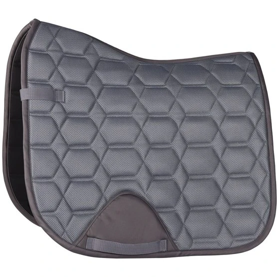 Schabracke aus modernem, silbergrauem, atmungsaktivem Mesh auf der Außenseite und Mesh-Futter auf der Innenseite. Füllung aus Schaumstoff und Polyfill sowie zusätzlich mit Gurt und Sattelschlaufen ausgestattet. Schnell trocknend.