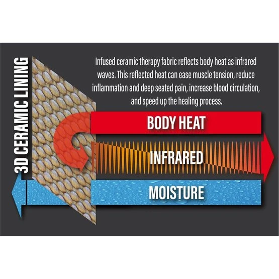 Sattelkissen mit „3D Keramik“ Futter. Dieses Material reflektiert die Körperwärme als Infrarotwellen. Diese reflektierte Wärme kann Muskelverspannungen und (beginnende) Entzündungen reduzieren, die Durchblutung verbessern und dadurch Heilungsprozesse fördern. Dieses Sattelkissen zeichnet sich durch eine hervorragende Passform unter dem Sattel und auf dem Pferderücken aus. Diagonal mit Umfang und Sattelschlaufen genäht. Eine Eigenschaft des Innenfutters ist, dass es Pillen kann, die keinen negativen Einfluss auf die Funktion des Sattelkissens / der Infrarotwellen haben. Material: Außen: 100% Baumwolltwill Füllung: 700 g Polyfilz und 5 mm Schaum, Futter: Polyester + Keramik