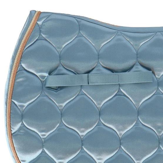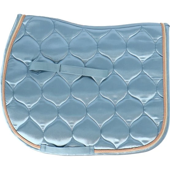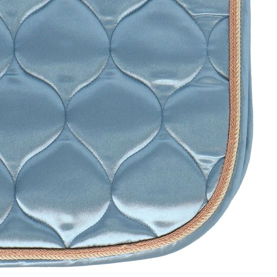 Satin-Schabracke mit luxuriöser 3-facher Zierkordel rundum. Ausgestattet mit Gurt- und Sattelschlaufen.