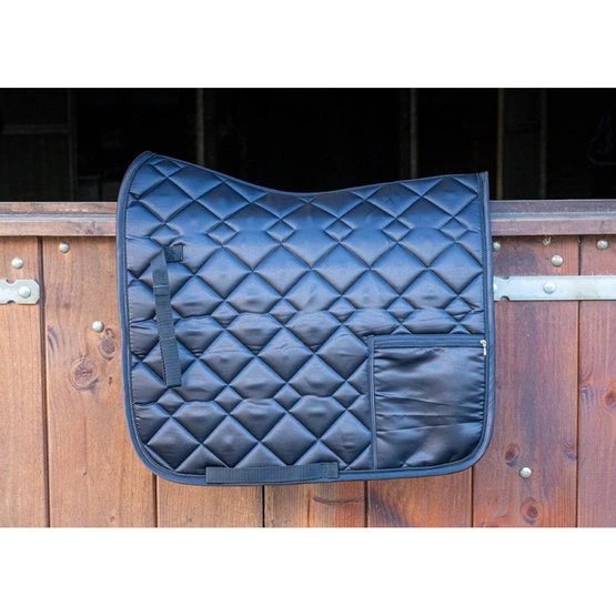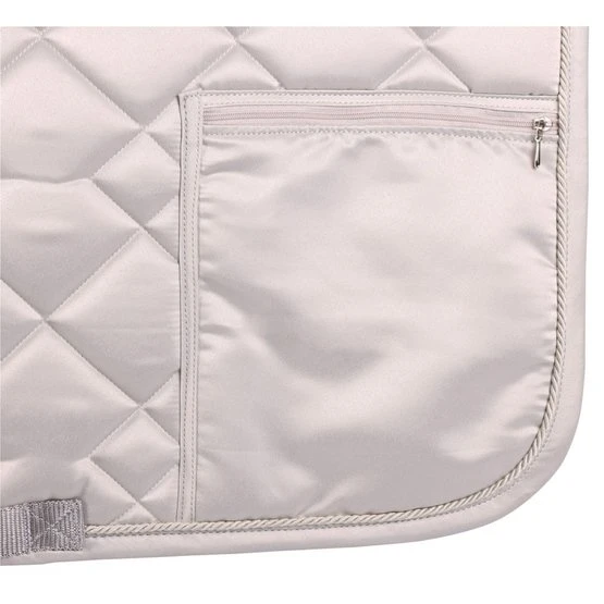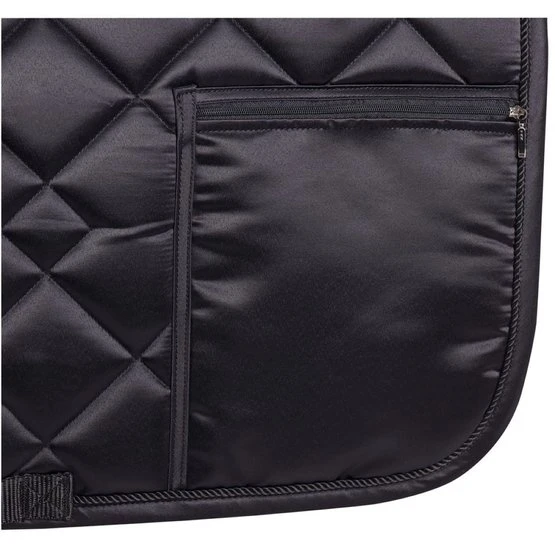 Schabracke aus luxuriösem Satinstoff mit einer Tasche auf der linken Seite mit Reißverschluss zur Aufbewahrung Ihrer persönlichen Gegenstände während des Reitens, 100 % Polyester