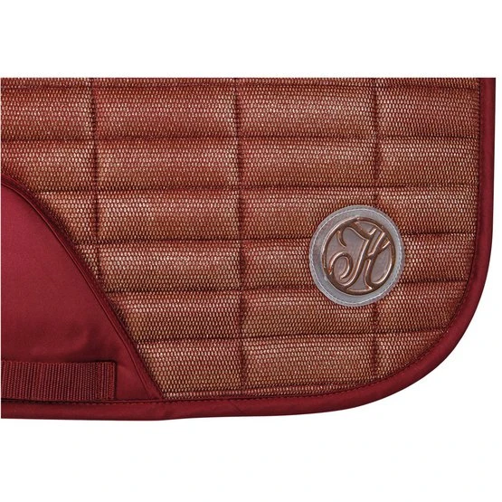 Sattelunterlage aus sportlichem Mesh-Material. Das glitzernde Sporty Mesh Material hat durch den roségoldenen Glitzerhintergrund eine schöne Wirkung. Ein echter Hingucker! Ausgestattet mit einer Gurtschlaufe und Klettverschluss an den Sattelschlaufen. Mit schönem roségoldenem Abzeichen. Material: Außen: Sportliches Mesh (100% Polyester) Futter: Mesh