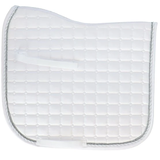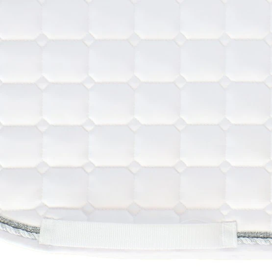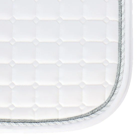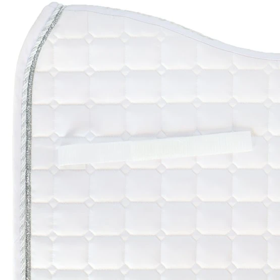 Schabracke aus edlem High-Density Twill-Material. Mit Kordel und Glitzerbindung. Mit Gurtschlaufe und Klettverschluss an den Sattelschlaufen. Material: Außen: High-Density-Twill (100 % Polyester) Futter: Mesh