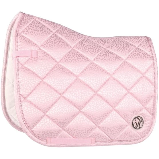 Schabracke mit schickem Ton-Ton-Leopardenmuster. Ausgestattet mit einer dekorativen Kordel und metallischen Paspeln. Ausgestattet mit einer Gurtschlaufe und Klettverschluss an den Sattelschlaufen.