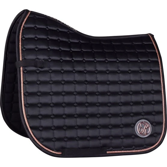 Schabracke aus luxuriösem Satinstoff. Ausgestattet mit einer Kordel und Metallpaspeln. Ausgestattet mit einer Gurtschlaufe und Klettverschluss an den Sattelschlaufen.