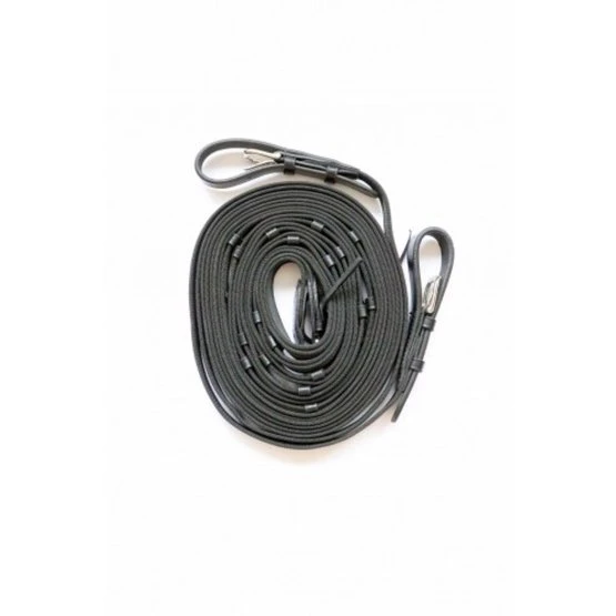 HB Luxuszügel aus rutschfesten Zügeln mit Lederstoppern. Die Zügel werden durch eine Schnalle zusammengeführt. Alle Kurzwaren sind aus Edelstahl