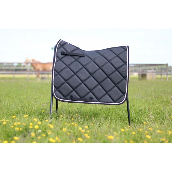 Luxuriöse anatomische Schabracke aus funkelndem Oberstoff. Mit Zierkordel. Die Innenseite dieser Pads verfügt über ein Cool Max-Futter, das die Wärme reguliert und für eine gute Feuchtigkeitsaufnahme sorgt.