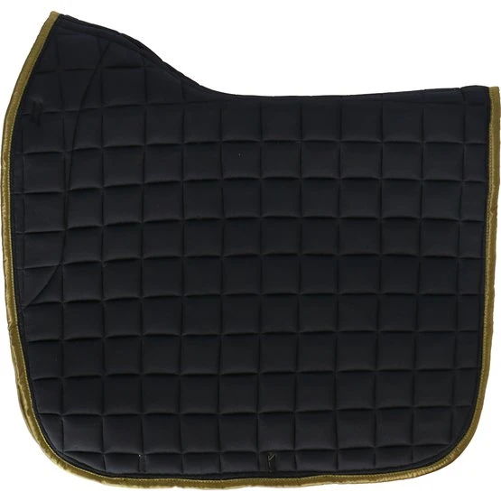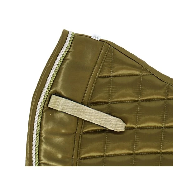 Luxuriöse anatomische Schabracke mit spezieller Verdickung an der Vorderseite des Pads, um den Sitz unter dem Sattel zu verbessern. Die Außenseite dieser Schabracke besteht aus einem speziellen glänzenden Stoff. Perfektes Sattelmodell um Druck zu vermeiden. Innen ist dieses Pad mit Cool-Max-Futter gefüttert.