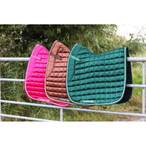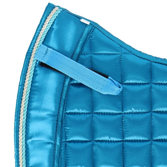 Luxuriöse anatomische Schabracke mit spezieller Verdickung an der Vorderseite des Pads, um den Sitz unter dem Sattel zu verbessern. Die Außenseite dieser Schabracke besteht aus einem speziellen glänzenden Stoff. Perfektes Sattelmodell um Druck zu vermeiden. Innen ist dieses Pad mit Cool-Max-Futter gefüttert.