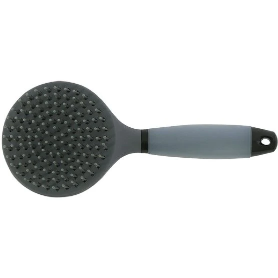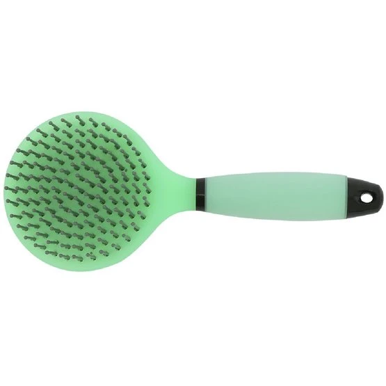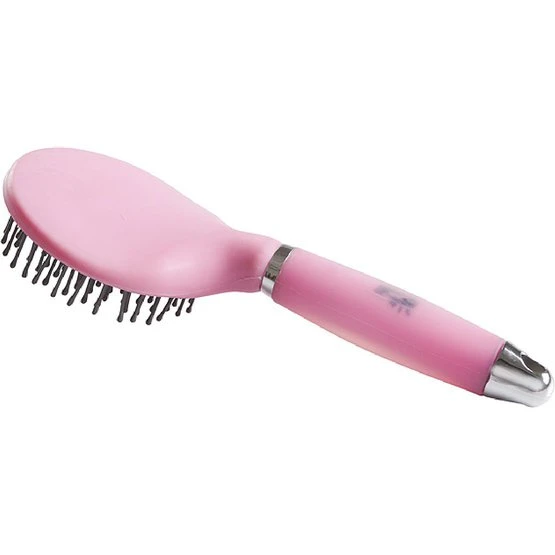 Polypropylenbürste mit Nylonborsten für wirkungsvolles Entwirren des Langhaars und Mähnenpflege. Griff aus ABS mit formspeicherndem Gel. Knopf aus ABS mit Aluminiumbeschichtung.