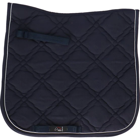 Die Schabracke „Bologna“ hat eine luxuriöse Ausstrahlung und besteht aus 100% Polyester mit einer anatomischen Passform. Durch das Material wird Feuchtigkeit schnell aufgenommen. An den Schlaufen befinden sich Klettverschlüsse, die vor einem Waschgang geschlossen werden sollten.
