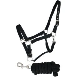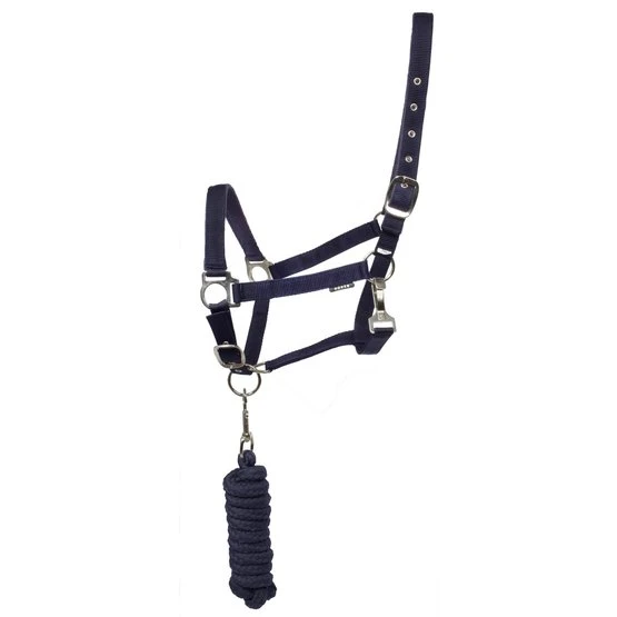 Dieser Halfter aus der Kollektion Dime wird inklusive Führstrick geliefert. Das Kopfstück und der Nasenriemen sind beide verstellbar und weich unterlegt.