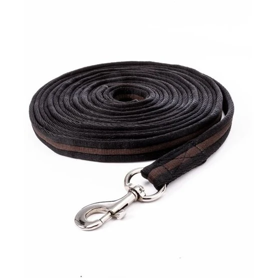 Lunging die für mehr Griff in besonderer Weise gewoben ist und auch in der Hand weich. Mit auf der einen Seite ein rotierendes Karabinerhaken und auf der anderen Seite einer Schleife.