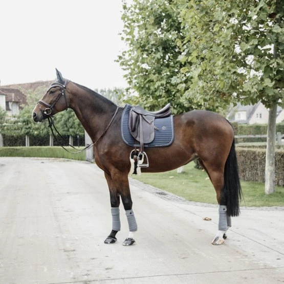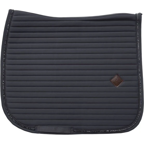 Unsere Schabracke Pearls mit der speziellen Dressurform schützt das Pferd für unangenehmen Reibungen. Die Schabracke besteht aus einem hochwertigen atmungsaktiven Material (43% Nylon, 43% Polyester und 14% Spandex). Ein echter Hingucker ist die Biese. Sie besteht aus einer Kordel und sehr schönen Glitzerperlen. Die Biese ist immer in der Farbe der Schabracke. In Kombination mit unseren Fliegenmützen Stone&Pearl(Long oder Wellington) oder auch mit den Fliegenmützen Wellington GlitterBandist der Look perfekt. Die Schabracke hat keine lästigen seitlichen Riemen, die am Sattel befestigt werden müssen. Die Riemen für den Gurt reichen für eine optimale Befestigung aus. Ein nettes Detail ist das kleine Kunstleder-Emblem mit dem Kentucky Logo. Es besteht genügend Platz für eine eigene Bestickung.Maschinenwaschbar bei 30°, kein Trockner.