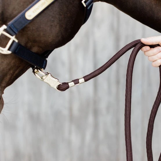 Die Pferdeleine Basic Panikhaken ist aus Nylon mit einem Panikhaken in Gold