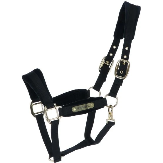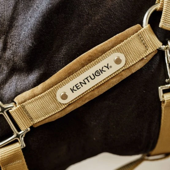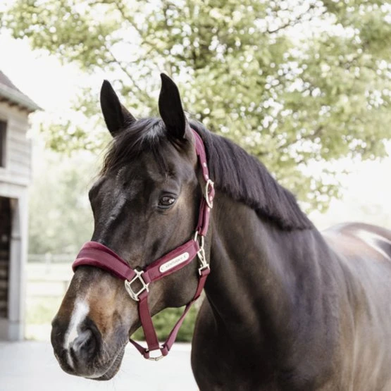 Das Halfter besteht aus einem starken Nylongewebe, um die Sicherheit Ihres Pferdes zu gewährleisten. Nase, Kiefer und Halsteil sind mit Samt verstärkt. Diese fühlt sich sehr weich an und ist sehr angenehm zu tragen. Das Halfter wird mit einem vergoldeten Karabiner geschlossen und ist an beiden Seiten des Genickstücks für eine perfekte Passform verstellbar.