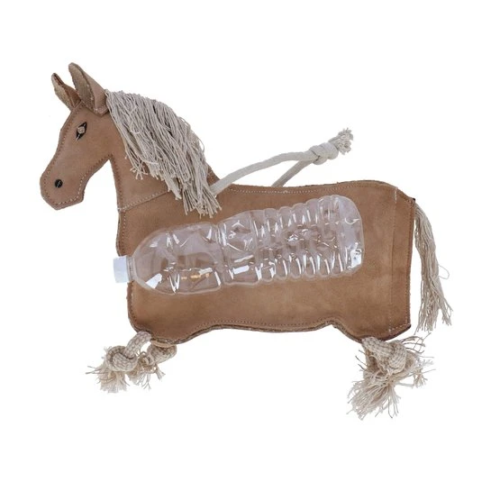 Wenn deinem Pferd schnell langweilig wird -das Relax Horse Toy Unicorn ist der ideale Kumpel. Dieses Pferdespielzeug sieht nicht nur gut aus, es verleitet auch zum Spielen. Wenn der Bauch gedrückt wird, entsteht ein knackendes Plastikgeräusch. Dieses Geräusch fasziniert Pferde und verleitet mit dem Stallkumpel zu spielen.Das Pferdespielzeug hat einen Klettverschluss unter dem Schweif, wodurch die Plastikflasche ausgewechselt werden kann. Der Hals und der Kopf sind gefüllt mit Jute, somit verlieren diese nicht an Form, wenn an den Stellen gespielt wird. Auch mit der losen Mähne, Schweif und Beinen macht es Spaß zu spielen. Damit das Spielzeug im Stall aufgehängt werden kann, ist ein kleines Seil am Widerrist angebracht. Das Relax Horse Toy Unicornist maschinenwaschbar bei 30°, kein Trockner.