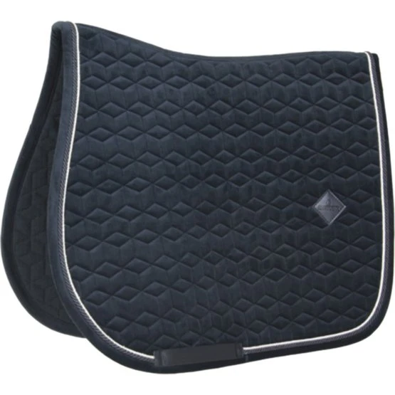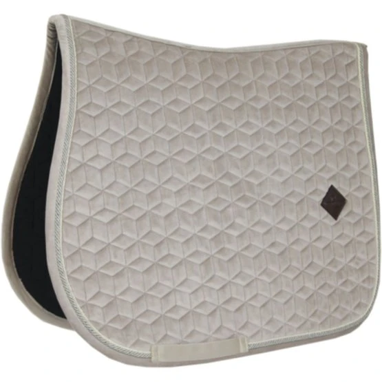 Diese Schabracke Saddle Pad Velvet mit doppelt gedrehtem Besatz ist sehr stilvoll und elegant. Bietet eine stoßdämpfende Funktion zwischen Pferderücken und Sattel und verhindert jegliche Reibung. Das Logo wird mittig platziert, damit eventuell noch Platz zum Sticken bleibt. Oben gibt es keine störenden Riemen zum Befestigen des Sattels, sondern nur Riemen für den Sattelgurt. Waschbar bei 30°, kein Trockner.