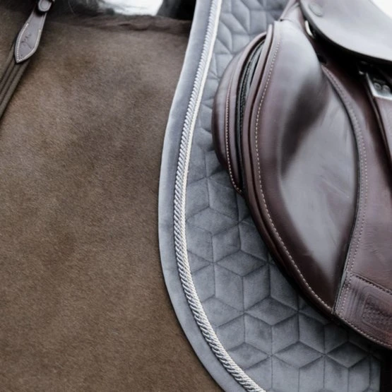 Diese Schabracke Schabracke Samt mit doppelt gedrehtem Besatz ist sehr stilvoll und elegant. Bietet eine stoßdämpfende Funktion zwischen Pferderücken und Sattel und verhindert jegliche Reibung. Das Logo wird mittig platziert, damit eventuell noch Platz zum Sticken bleibt. Oben gibt es keine störenden Riemen zum Befestigen des Sattels, sondern nur Riemen für den Sattelgurt. Waschbar bei 30°, kein Trockner.