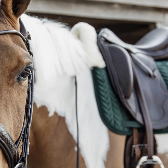 Die hautfreundliche Samtschabracke ist sowohl in Spring- als auch in Dressurform erhältlich. Es gibt nur einen Riemen für den Sattelgurt, sodass Sie keine lästigen Riemen für Ihren Sattel haben. Das Kentucky-Logo ist etwas höher platziert, sodass noch genug Platz bleibt, um den Bezug zu besticken.